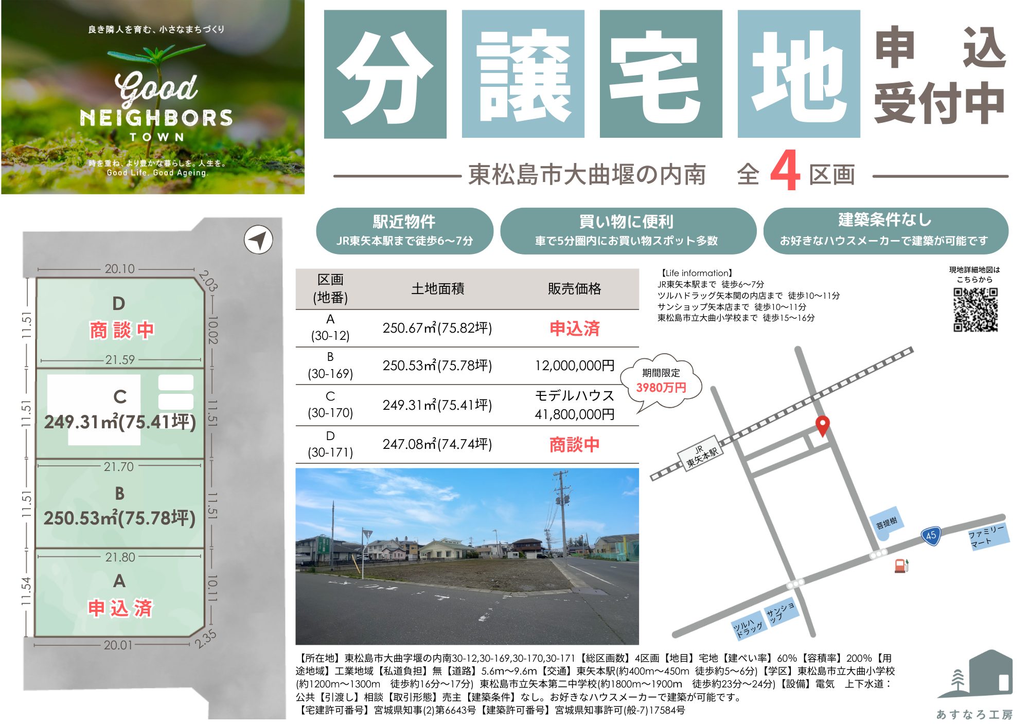 | 所在地 | 東松島市大曲字堰の内南30-12,30-169,30-170,30-171 |