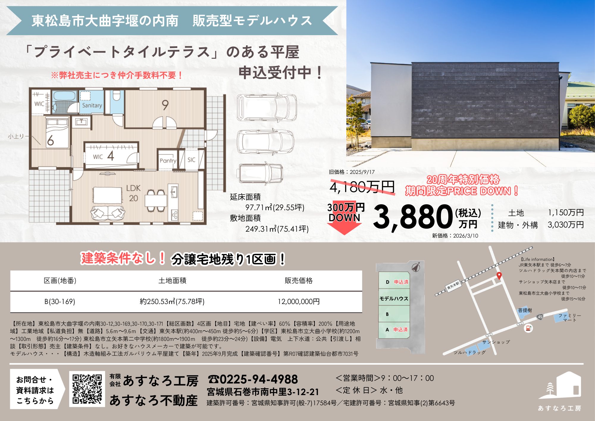 【東松島市大曲】販売型モデルハウス 平屋3LDK 申込受付中!